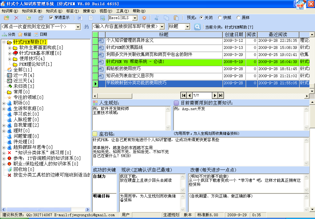 针式PKM与其它资料管理软件不同之处: