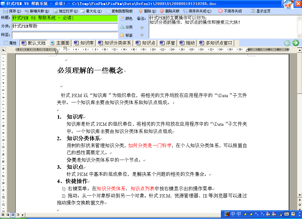 :资料整理助手和中转站,方便知识点的重新归类、分类的移动和文件关联到其它知识点