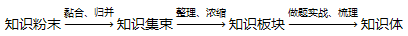 这样打比喻目的是想告诉吴先生,「知识体系」这玩意儿是不可能一步到位的,像网文快捕这种低层次的资料整理只达到了知识板块的层级。知识学习的整个生命周期中,知识是按照从 简单→复杂,零散→有序,混乱→结构化,疏松→密集,零星汇集→海量一体 的方向发展的。在知识消化、理解、记忆的过程中,不同的阶段有不同的形态,对应不同的知识组织方法。 知识体(知识的最高形态):结构化→树状层级分类体系 知识板块(知识的过度形态):模块化→组织结构图 知识集束(知识的重要形态):标签化→知识地图 而知识地图就是吴先生后面要发展的方向。